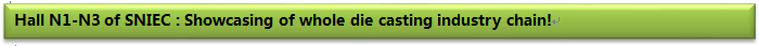 The exhibition will show you three theme halls: Die casting machine and peripheral equipment (Hall 1), Automation, materials, melting equipment, detection and softwares (Hall 2), and Die casting parts and molds, as well as CHINA NONFERROUS 2019 (Hall 3). The three theme halls will present the whole industrial chain: the intelligent solutions of modern die casting manufactory as well as up&down stream of nonferrous alloys and special casting industry.