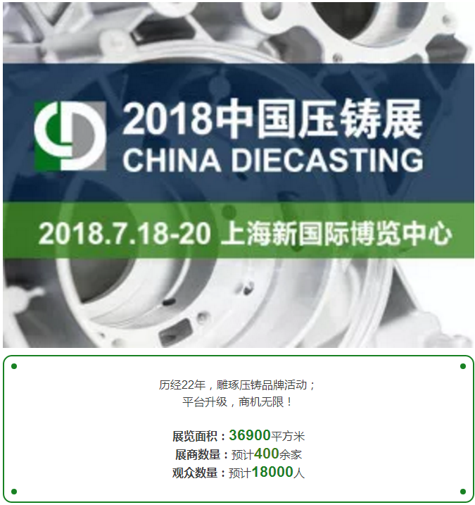 CHINA DIECASTING 2018 中國壓鑄展定于2018年7月18-20日在上海新國際博覽中心舉行。