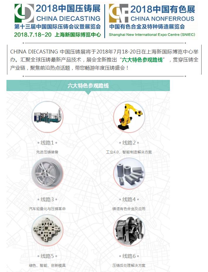 【新看點(diǎn)】全新六大特色參觀路線(xiàn),縱覽壓鑄行業(yè)發(fā)展新趨勢(shì)! CHINA DIECASTING 2018 中國(guó)壓鑄展