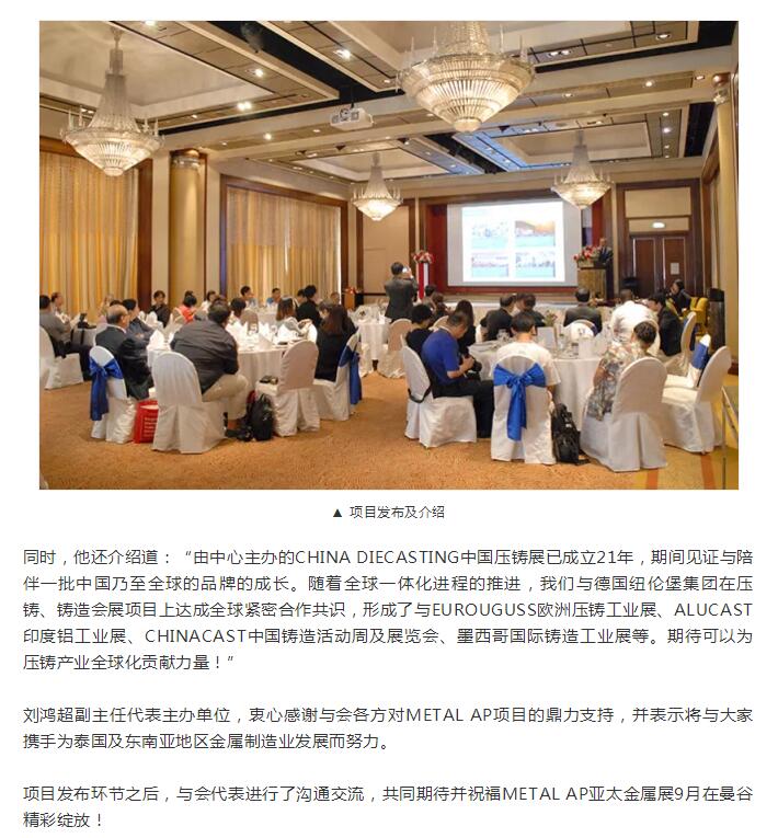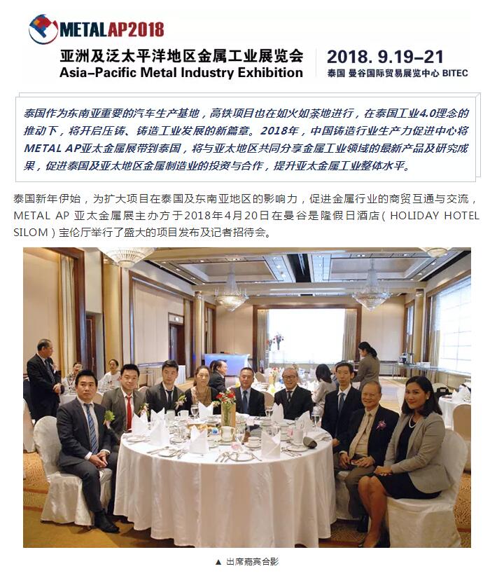 為泰國(guó)及東南亞地區(qū)金屬工業(yè)發(fā)展注入新活力 ——METAL AP 亞太金屬展新聞發(fā)布會(huì)在泰國(guó)曼谷召開