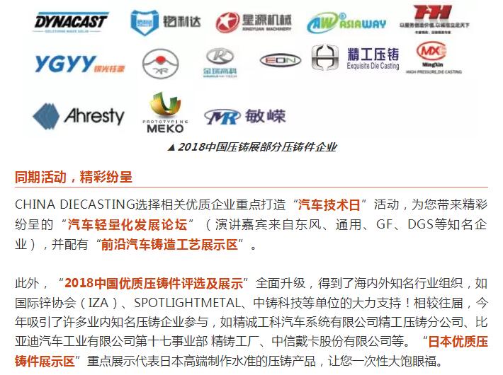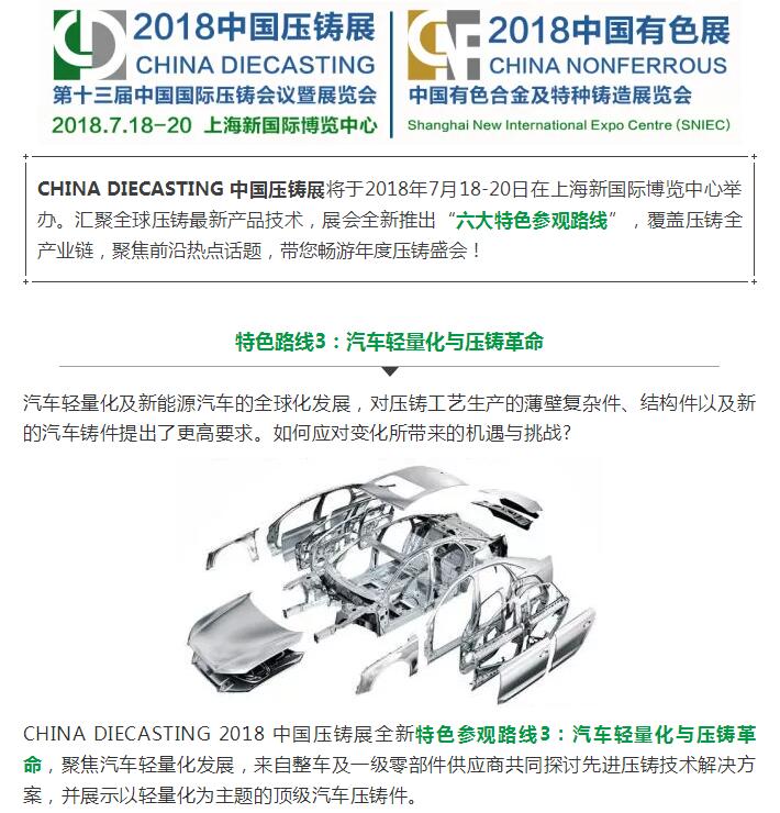 【特色路線】尖端壓鑄件企業(yè)助力汽車輕量化 CHINA DIECASTING 2018 中國壓鑄展