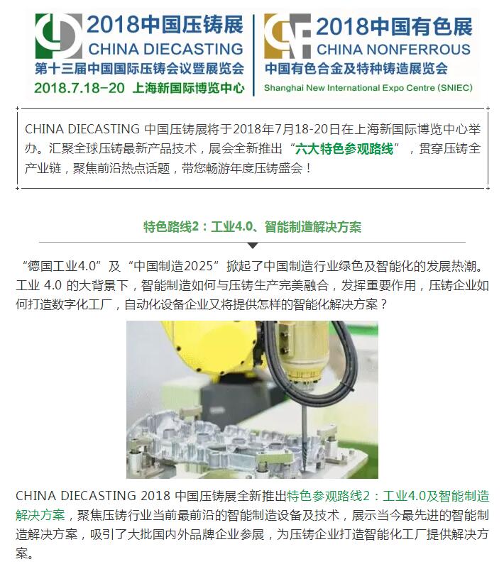 【特色路線】智能化解決方案提供商,聚焦工業(yè)4.0 CHINA DIECASTING 2018 中國壓鑄展