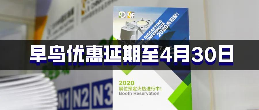 這場疫情幾乎打亂了所有行業(yè)的既定節(jié)奏,壓鑄及有色領(lǐng)域也不例外。目前,大部分企業(yè)受疫情影響均處于復(fù)工復(fù)產(chǎn)狀態(tài),雖然受到疫情短期擾動,但整體市場仍可能先抑后揚。為了助力壓鑄及有色行業(yè)企業(yè)渡難關(guān),在“亂”市中開拓市場,中國壓鑄展及中國有色展正在加強海內(nèi)外觀眾組織工作,并積極尋找更多為參展企業(yè)減負的方案。因此,中國壓鑄展(CHINA DIECASTING)及中國有色展(CHINA NONFERROUS)組委會決定延長展位預(yù)訂早鳥9折優(yōu)惠至2020年4月30日!