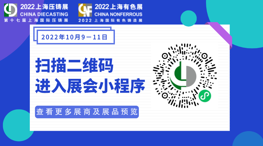 作為壓鑄行業(yè)的風向標,CHINA DIECASTING & CHINA NONFERROUS 2022上海壓鑄有色展將于2022年10月9-11日在蘇州國際博覽中心舉辦。屆時,將為行業(yè)帶來更專業(yè)、更全面的新產品、新技術、新方案。